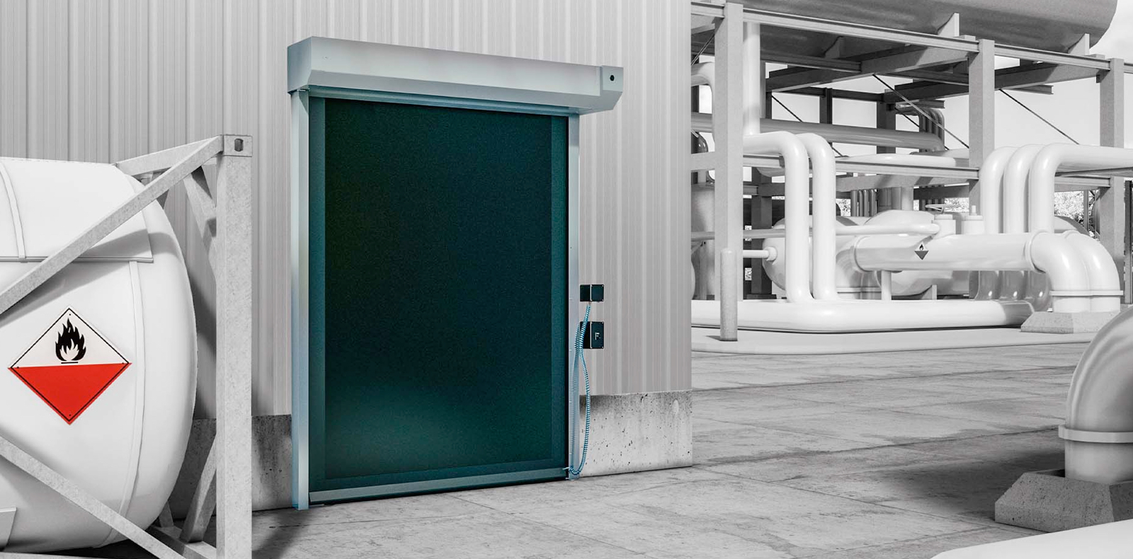 ATEX (Atmosphères Explosibles) rated doors are specially designed for sites where flammable gases, vapours, dust, or airborne particles may ignite.